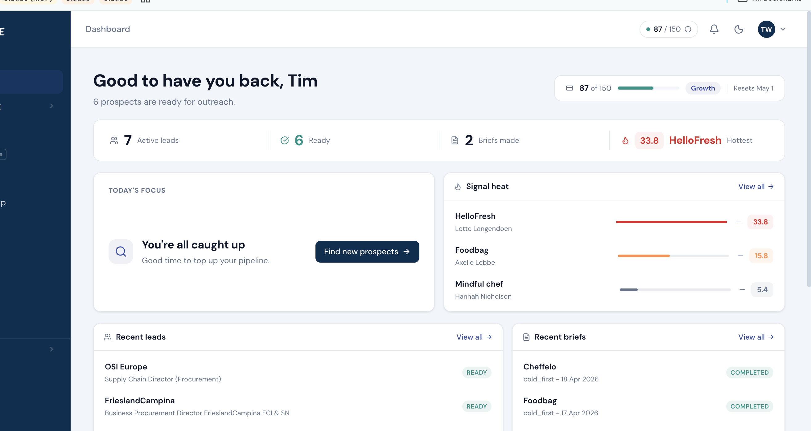 Ranked by relevant news signals, so every first touch has a real reason with a ready-to-send message already written in your voice.